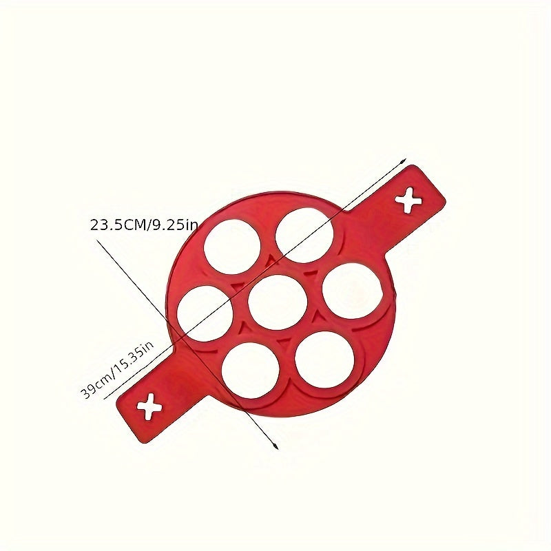 El molde de silicona para panqueques de 7 espacios circulares es un práctico utensilio de cocina diseñado para facilitar la preparación uniforme y rápida de panqueques, huevos, tortillas u otros alimentos de forma redonda. Fabricado en silicona de grado alimenticio, este molde es resistente al calor, flexible y antiadherente, lo que permite una cocción pareja y un fácil desmolde sin necesidad de utilizar aceites o grasas adicionales. Su diseño con múltiples cavidades permite cocinar varias porciones al mismo tiempo, optimizando el tiempo en la cocina y garantizando resultados consistentes en cada uso.