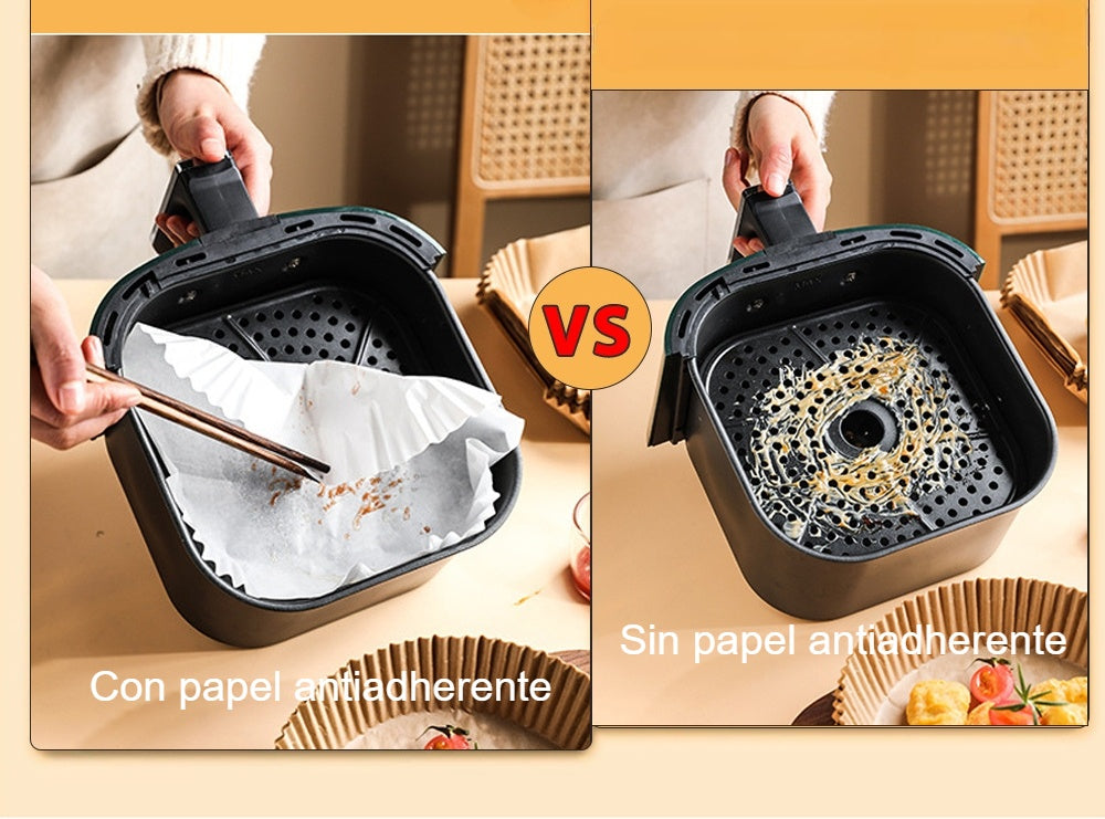Estos prácticos revestimientos desechables de pulpa de papel están diseñados para proteger el interior de tu freidora de aire, evitando que los alimentos se peguen y facilitando la limpieza tras cada uso. Gracias a su material antiadherente y resistente al calor, permiten una cocción uniforme, higiénica y sin residuos. Ideales para quienes buscan comodidad, orden y resultados perfectos en cada preparación.