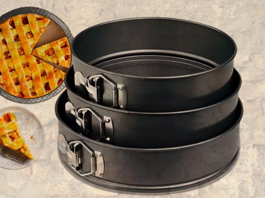Lleva tu repostería al siguiente nivel con el Juego de Molde Antiadherente de 3 Piezas Redondo (24cms-26cms-28cms) el set ideal para preparar tortas, pasteles y bizcochos como un profesional. Fabricados con materiales resistentes y recubrimiento antiadherente de alta calidad, estos moldes permiten una cocción pareja y un desmolde fácil, sin que nada se pegue. Incluyen cierres laterales tipo clip y bases desmontables que facilitan el manejo y la presentación de tus preparaciones. Perfectos para cocineros aficionados o expertos, este set te brinda versatilidad, durabilidad y resultados impecables en cada horneado.