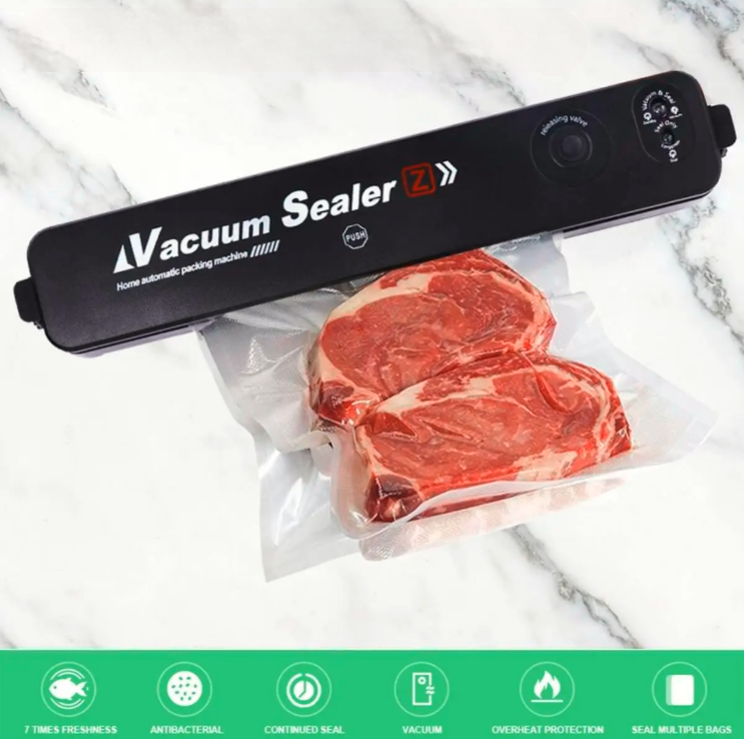 La Máquina Selladora al Vacío, una herramienta práctica e indispensable para cualquier cocina moderna. Gracias a su tecnología de succión y sellado hermético, esta máquina extrae el aire de las bolsas y envases, manteniendo la frescura, el sabor y los nutrientes de tus alimentos por días o incluso semanas más. Ideal para carnes, frutas, verduras, snacks y productos cocidos o crudos, te permite ahorrar tiempo, dinero y espacio en el refrigerador o congelador. Una solución eficiente para una alimentación más saludable y una despensa mejor organizada.