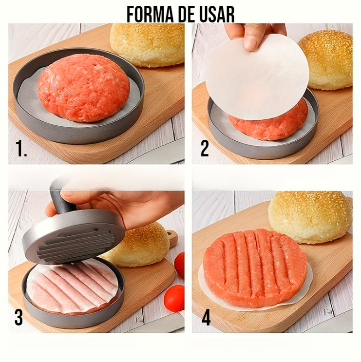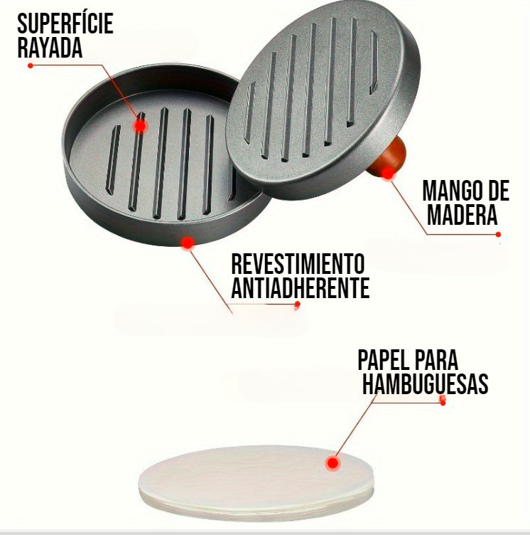 Con el Molde Prensa para Hamburguesa, preparar tus propias hamburguesas nunca fue tan fácil y rápido. Este práctico utensilio te permite dar forma uniforme a la carne, asegurando un grosor parejo y una cocción ideal en cada hamburguesa. Ideal para carne, pollo, legumbres o mezclas vegetarianas, su diseño ergonómico y materiales resistentes lo convierten en un aliado infaltable en tu cocina. ¡Sorprende a tu familia o amigos con hamburguesas caseras dignas de restaurante!