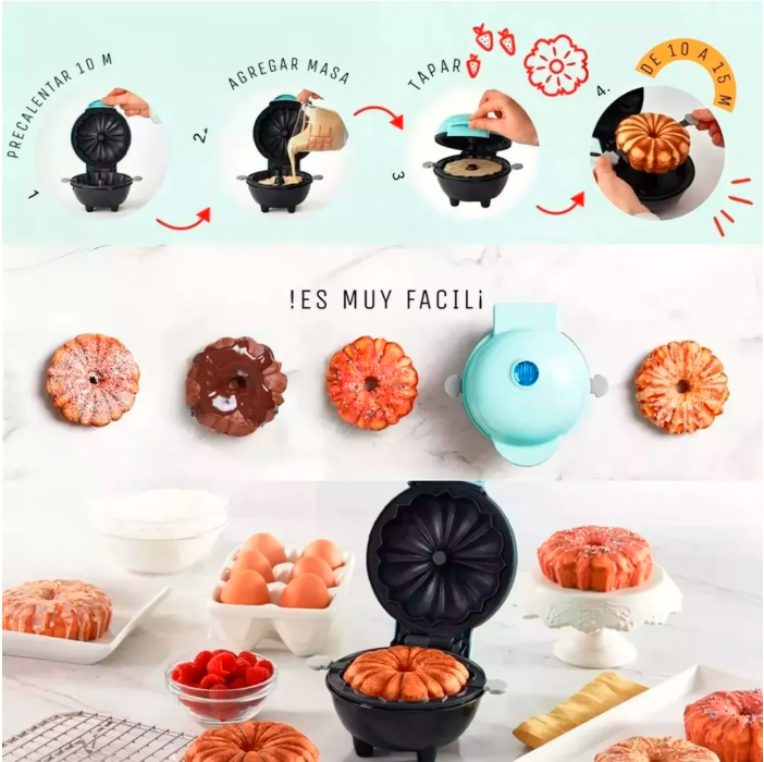 Fácil de usar: Solo vierte la mezcla, cierra la tapa y espera. No se requieren conocimientos avanzados de repostería.